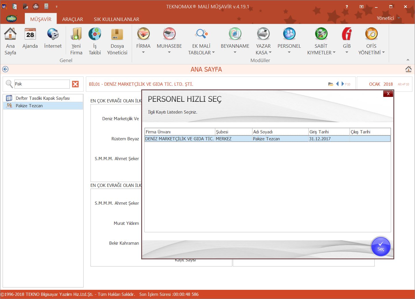 Hızlı erişim bölümünden personel adını girerek, personelin hangi firmalarınızda çalışmış olduğu bilgisini anında görüntüleyin ve tek tuşla ilgili firmadaki personel kartına ulaşın.