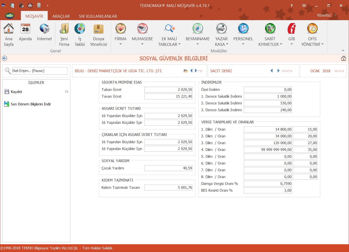 Teknomax tüm ücret, prim ve vergi tanımlarını kendi veritabanından tek tuşla güncelleyebilir.