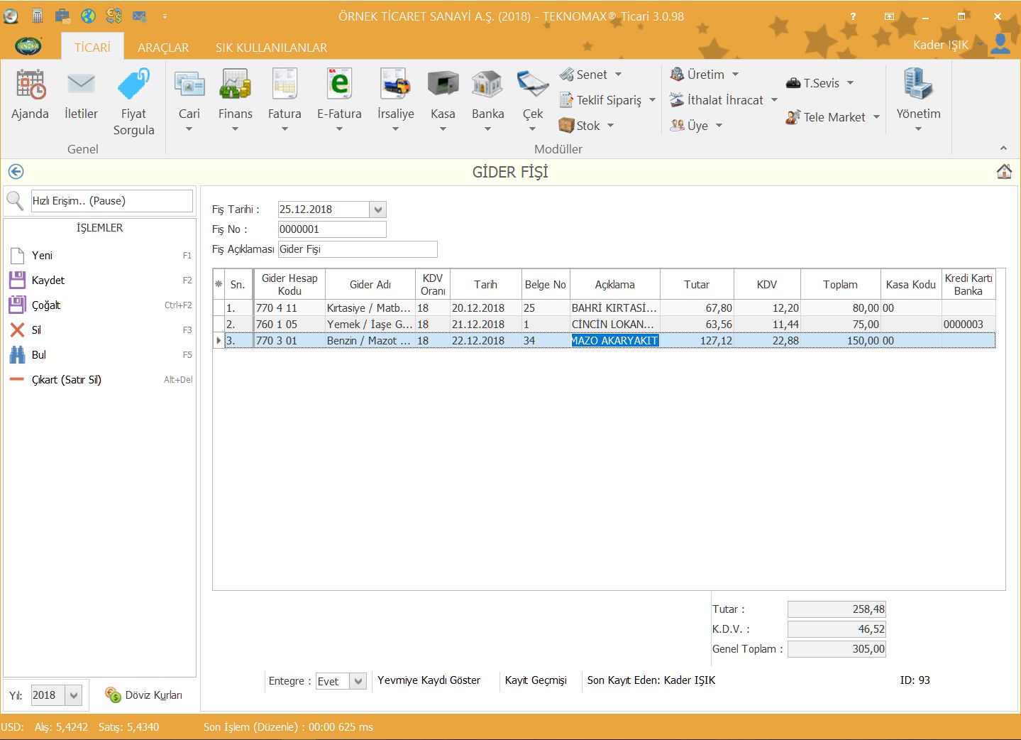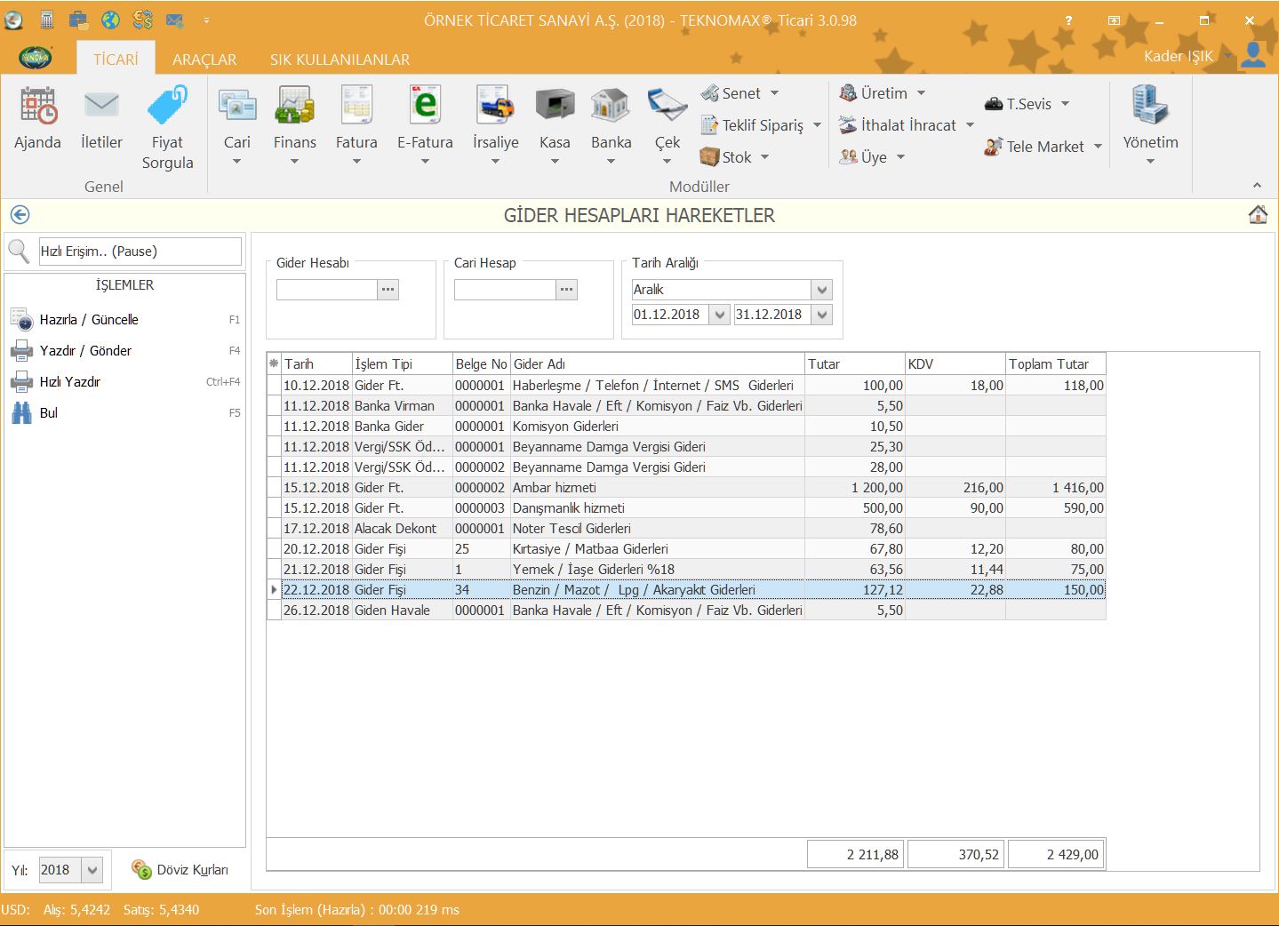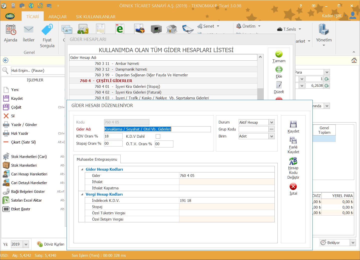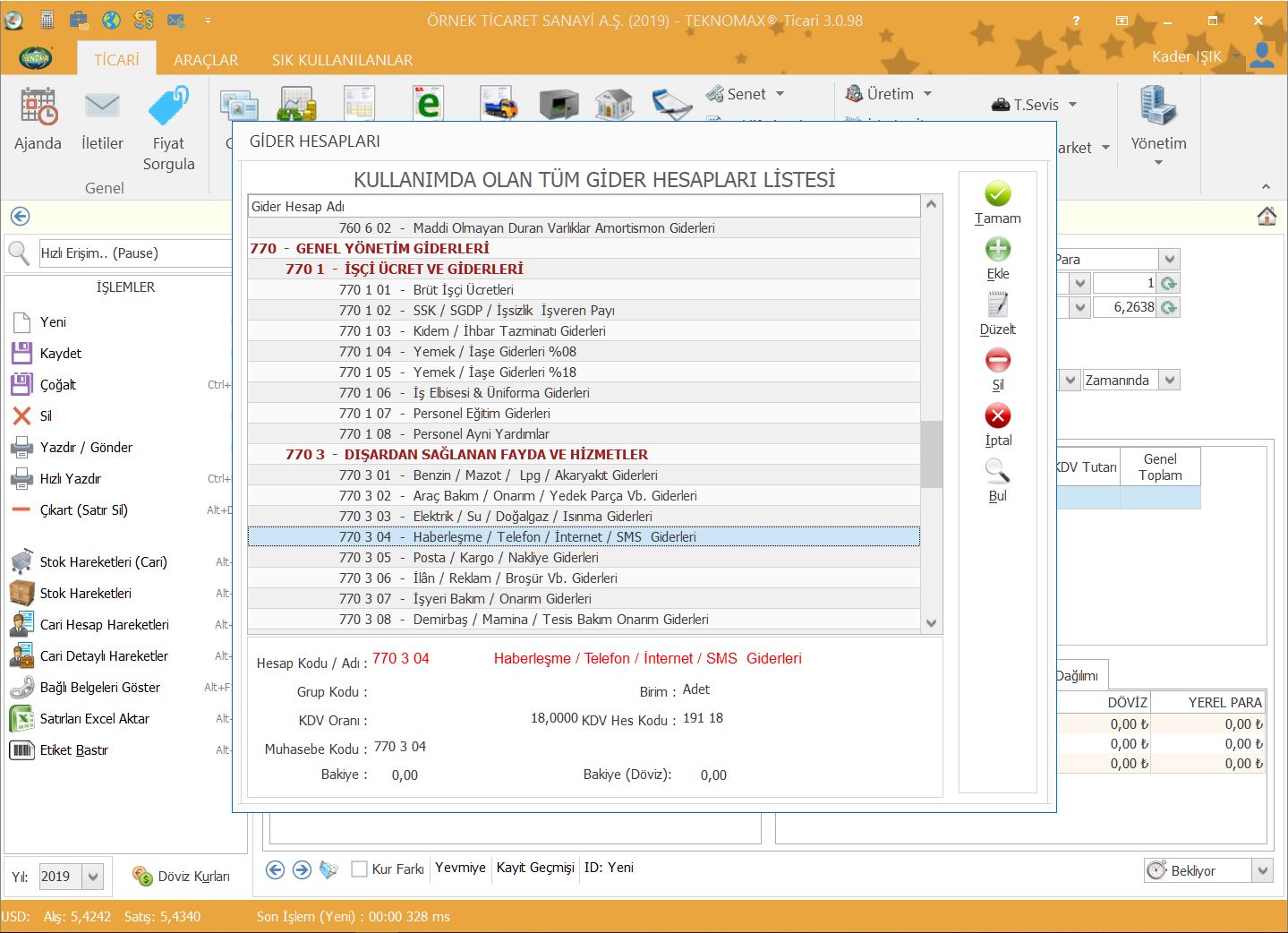 Firmamızın faaliyeti sırasında katlanmış olduğu giderleri istediğiniz alt kırılımlarla birlikte programda takip edebilirsiniz. Örneğin Benzin/Mazot giderlerinizi toplu olarak görebildiğiniz gibi ilgili gider hesabına alt hesap açıp her bir araç için ayrı ayrı giderlerini takip edebilirsiniz.